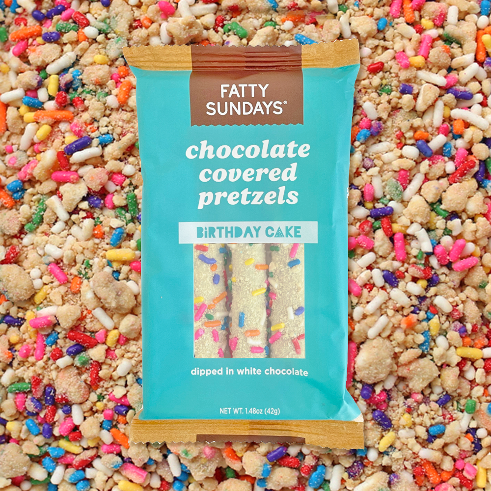 Our birthday cake pretzels are bursting with flavor, and a delicious reminder that any day is worth celebrating! Coated in creamy white chocolate and covered with vanilla cookie crumbles and rainbow sprinkles, these almost-too-pretty-to-eat pretzel rods taste as sweet as your favorite childhood funfetti birthday cake. Made with white chocolate. Certified Kosher.